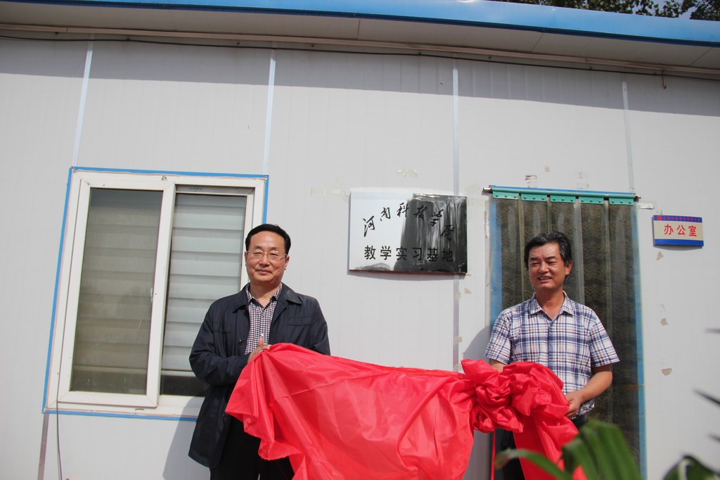 在热烈的掌声中,副校长王文鹏、长垣县领导共同为河南科技学院教学实习基地揭牌。