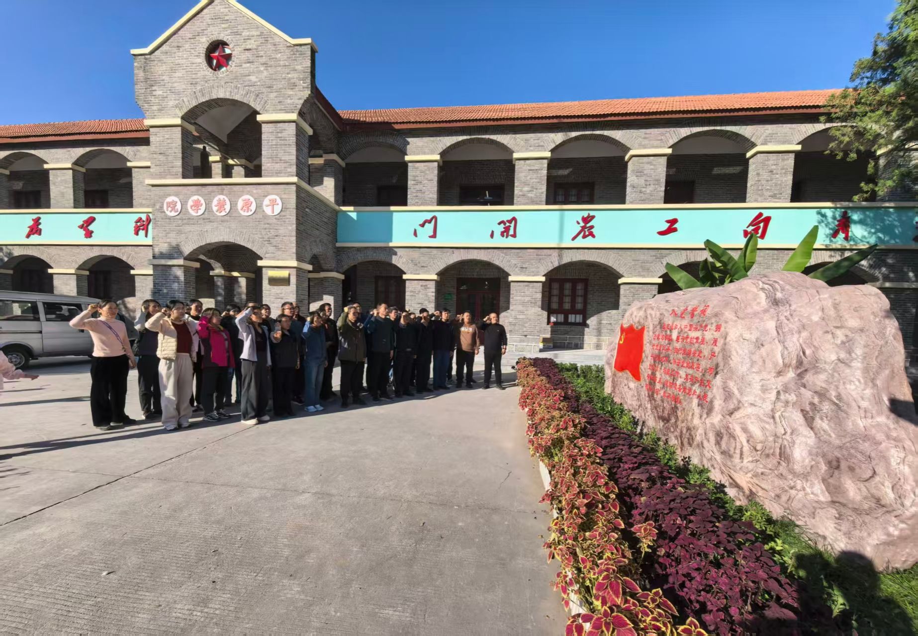 为进一步传承和发扬“百农精神”,强化教工使命担当,11月1日,园艺园林学院组织教工赴薄壁镇“志气林”、耿风泉抗战实物展览馆及百泉校区,开展“行走的党课”主题党日暨秋游活动。
