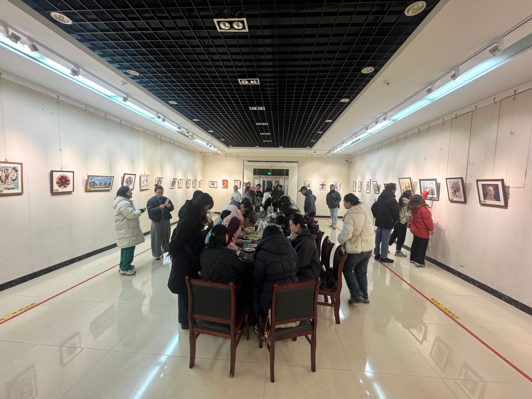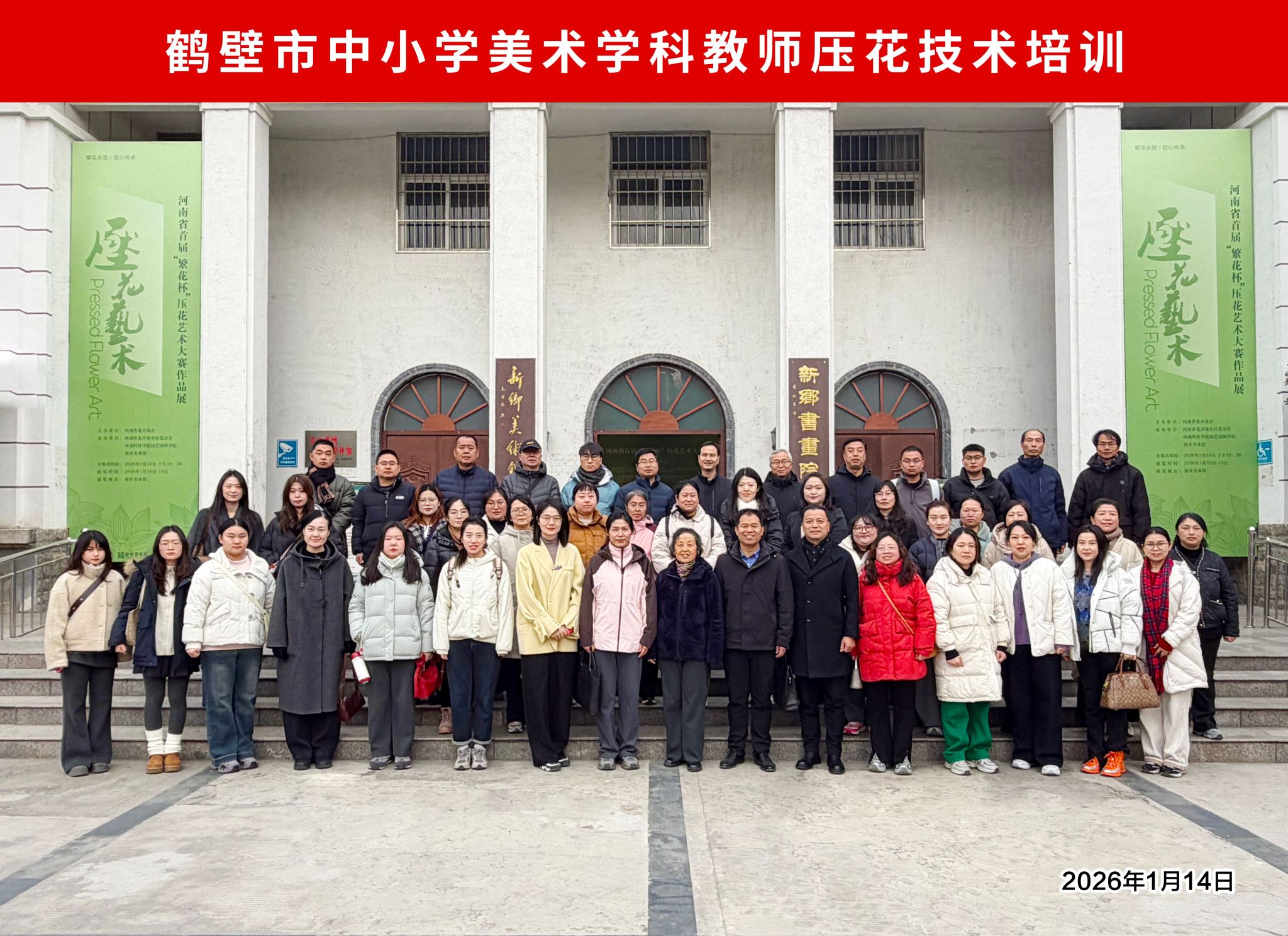 1月14日上午,我院承办的河南省首届“繁花杯”压花艺术大赛作品展在新乡市美术馆迎来一批特殊的参观者——由鹤壁市教育体育局副局长郭辉、教师发展中心主任徐杰带队,鹤壁市直各学校教师代表组成的压花技术培训团。学院班子成员及压花作品展负责人参加接待。