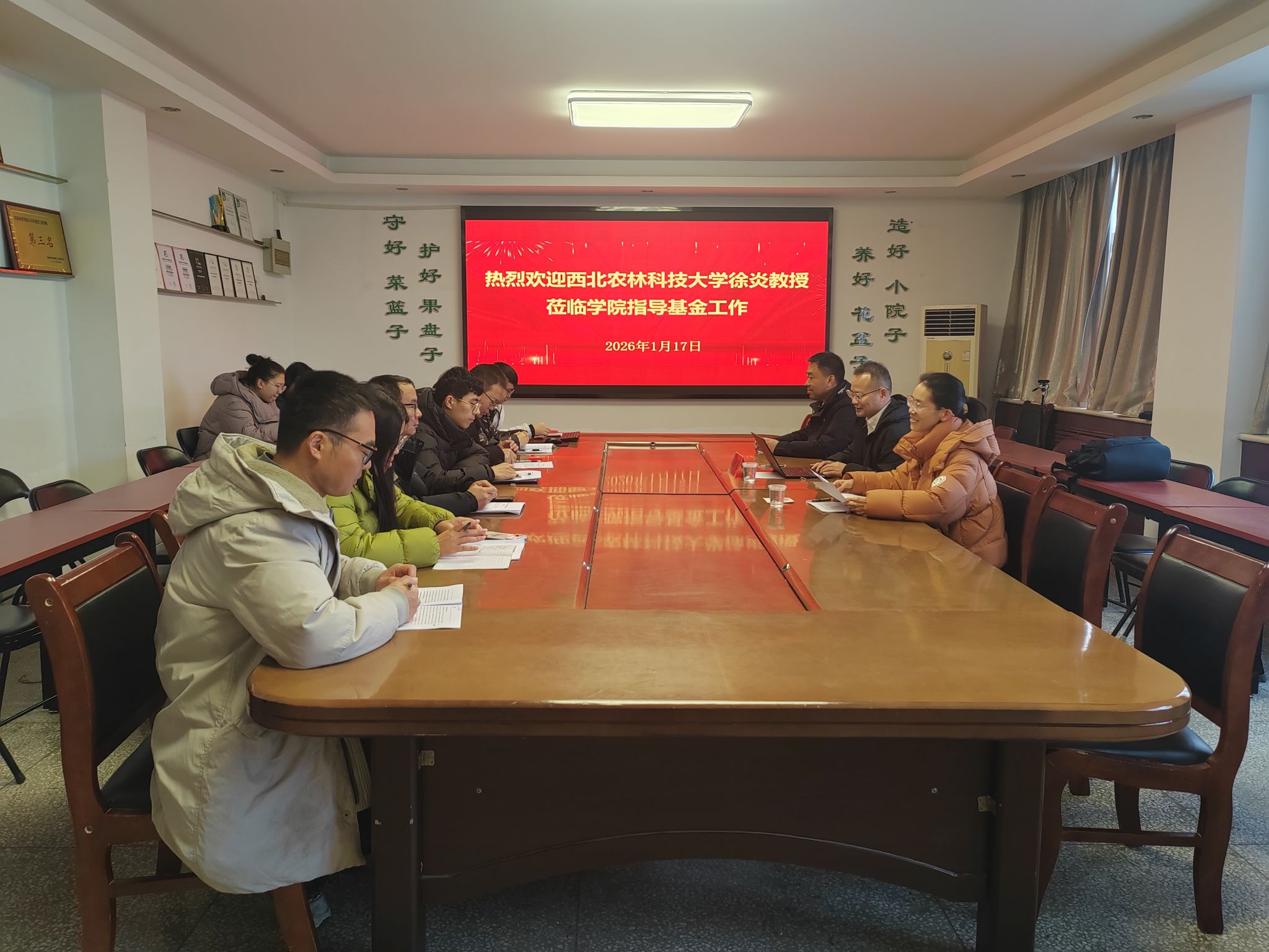 2026年1月17日,我院特邀国家葡萄产业技术体系岗位科学家、西北农林科技大学未来农业学院院长徐炎教授在实验楼B316会议室作学术报告并开展基金申报指导。学院领导班子成员及申报教师参会,会议由学术副院长袁敬平主持。