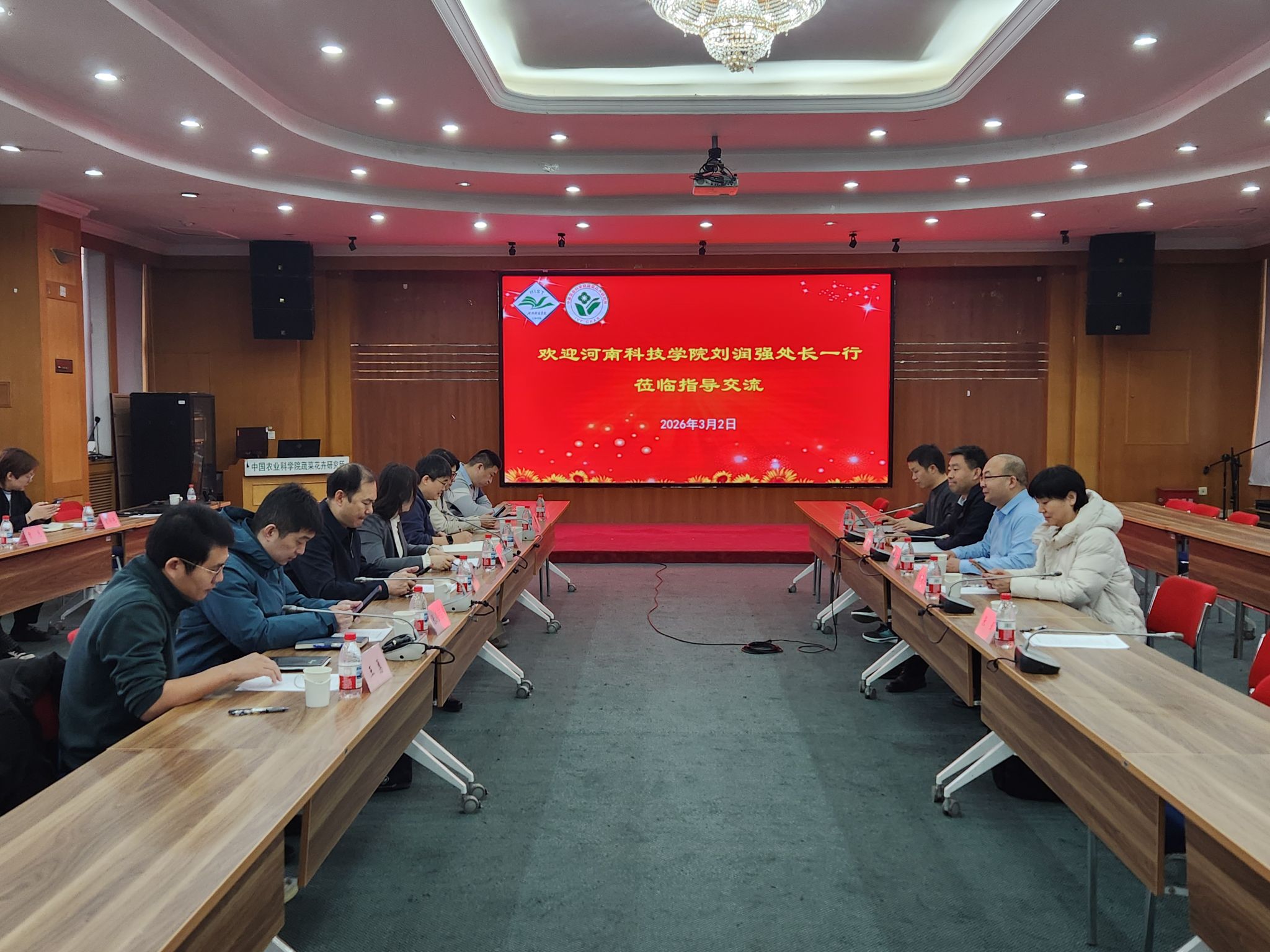 座谈会上,刘润强对研究所的热情接待表示感谢,并介绍了河南科技学院的办学历史、发展定位以及在学科建设、科研创新等方面取得的成效。张毅川结合园艺园林学院学科布局、专业建设、研究生培养及科研平台建设等方面作了详细介绍。董春娟介绍了研究所在科技创新体系建设、重大科研项目承担、成果转化与国际合作等方面取得的突出成绩。双方围绕研究生培养模式创新、青年教师能力提升路径、团队交流合作等议题进行了深入探讨。与会人员一致认为,高校与科研院所协同发展是提升创新能力、服务产业需求的重要路径,应在机制创新和平台共建方面持续发力。经充分交流,双方达成共识,将建立常态化沟通机制,在高层次人才培养、青年教师科研能力提升、项目联合申报等方面力争实现新突破,努力构建协同创新、共赢发展的合作新格局。