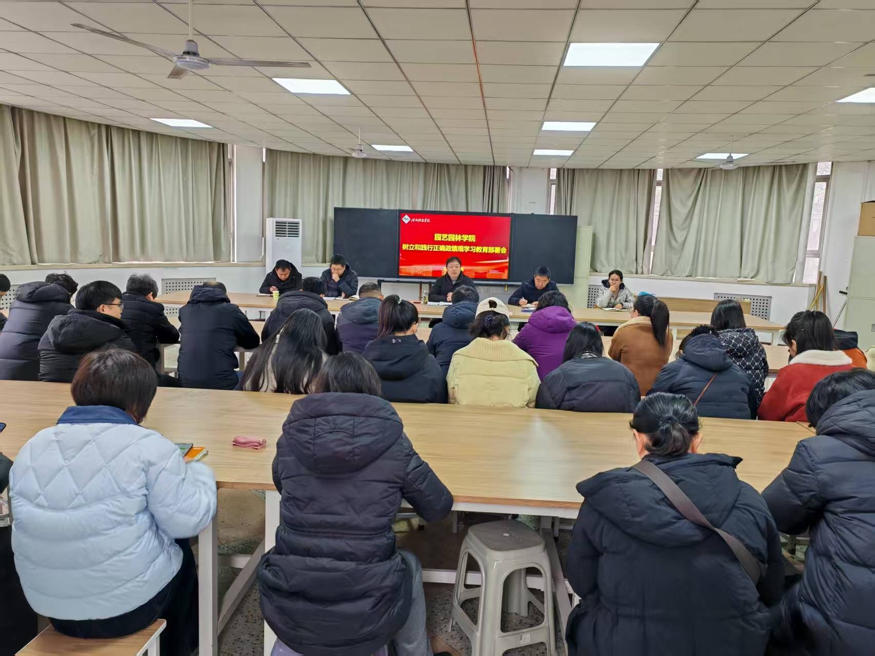 会上,副院长孙涌栋首先传达了学校党委关于树立和践行正确政绩观的指示精神。学院院长张毅川宣读了《中共河南科技学院园艺园林学院委员会树立和践行正确政绩观学习教育实施方案》,并从“为何学、学什么、怎么改”三个维度对学院学习教育的具体安排进行了详细部署,要求全体教师要像呵护珍稀苗木一样呵护学生的成长,像深耕试验田一样深耕教学科研一线,以钉钉子精神推动学院事业高质量发展。