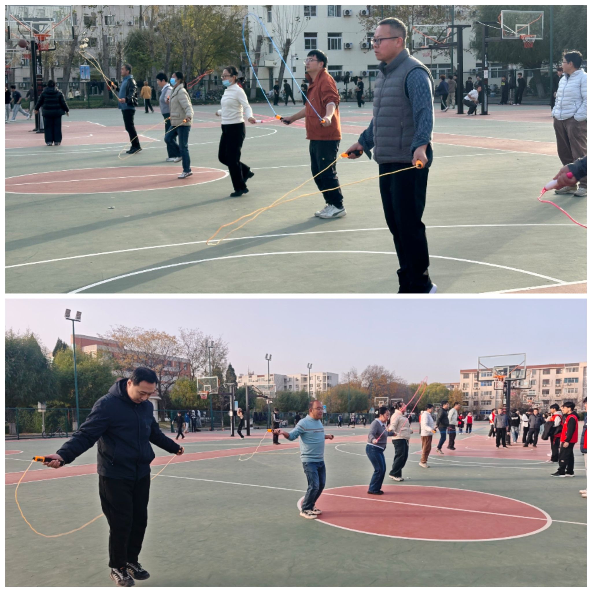 本次“冬季健身月”活动内容丰富,兼顾趣味性与知识性。冬季健步走作为经典项目,教职工们在欣赏校园冬景的同时,增进了同事间的交流;五子棋与扑克牌“双升”比赛考验着老师们的策略思维与默契配合;定点投篮竞赛与1分钟跳绳挑战,参赛者以精准投射与高频跳跃点燃赛场激情;知识竞答环节融入党的二十届四中全会精神,推动理论学习入脑入心。
